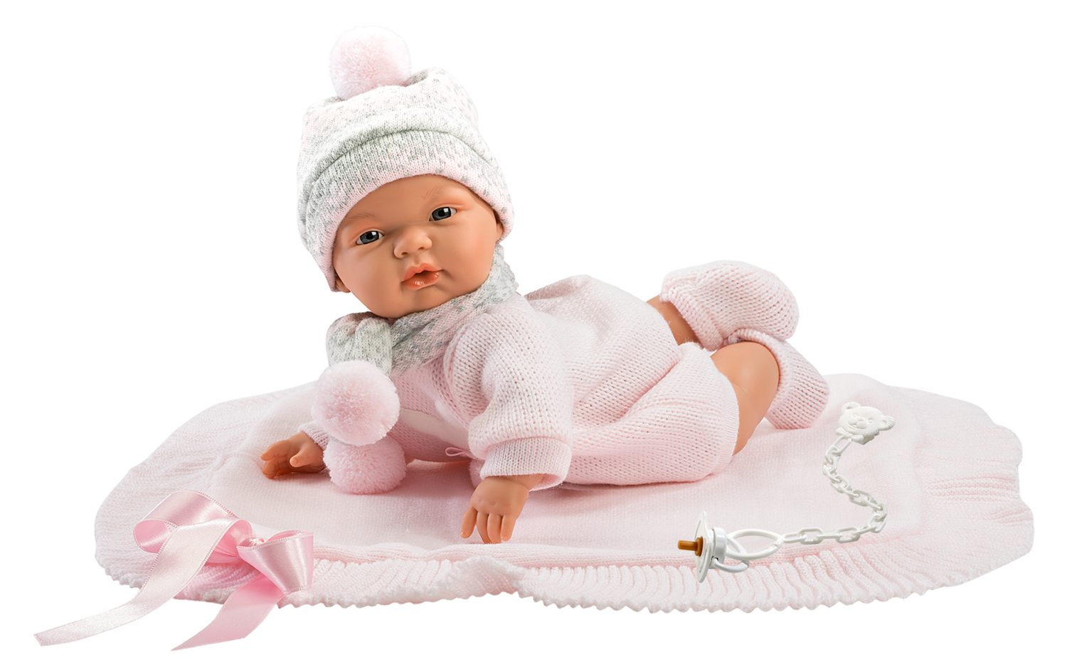 The set includes her favourite pacifier, when we take it, the doll will cry and call mum, bye. The pink styling of the doll and the blanket with which we can wrap it to sleep are made of soft and durable material. The doll is packed in a decorative cardboard box.